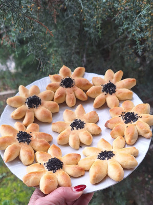 Во топло млеко ставаме шеќер, квасец, малку брашно и оставаме да се активира. Во сад ставаме пастопен путер, кисело млеко кое било на собна температура и активираниот квасец. Полека додаваме брашно и месиме се додека не добиеме средно меко тесто. Го покриваме со фолија за свежа храна и оставаме да се дуплира. Нежно тестото го делиме на топчиња со големина на орев. Со дланката малку ги истенчуваме, и на секое топче ставаме дно од мала ракиена чашка. Правиме 4 засеци, па потоа секоја четвртина ја делиме на половина, нежно со два прста формираме цвет. Полека го земаме секое парче и го ставаме во плех обложен со пек хартија. Постапката е иста за цело тесто. Пред печење се потворува постапката со дното на чашката, бидејки може да се деформира средината. Додаваме во средината кечап и оригано. Премачкуваме со јајце. Оставаме да надојдат кифличките уште 20 минути. Ги печеме околу 20-25 минути во загрена рерна на 200 степени.
